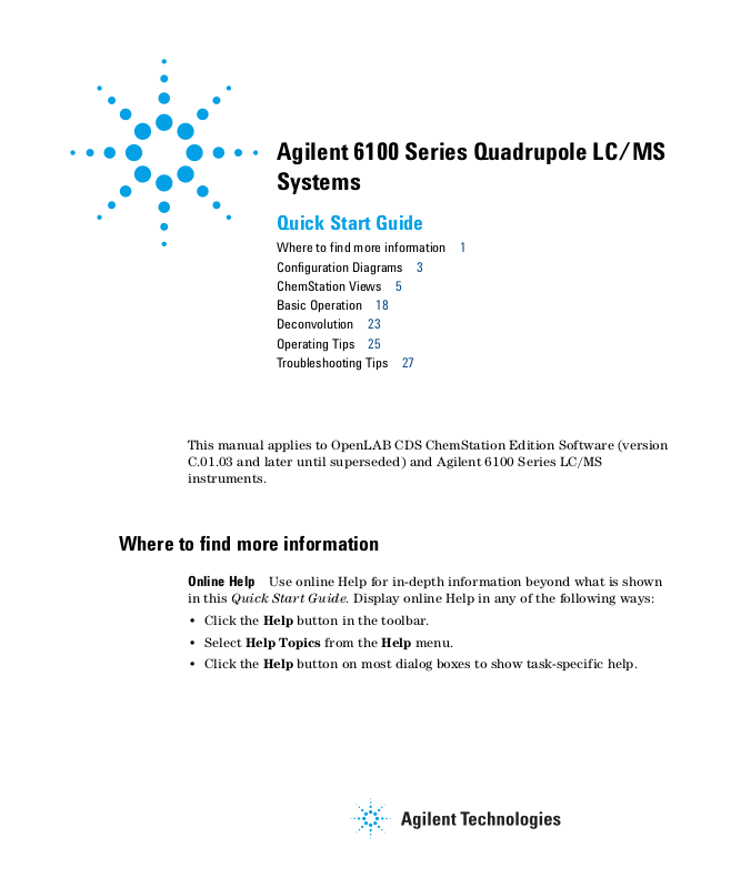 2Agilent 6100 Series LC/MS System Quick Start Guide