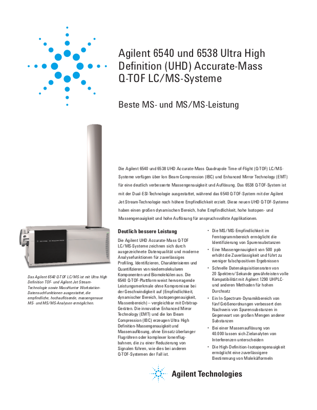 Definition TOF- und Agilent Jet StreamTechnologie sowie MassHunter WorkstationDatensuchfunktionen ausgestattet, die