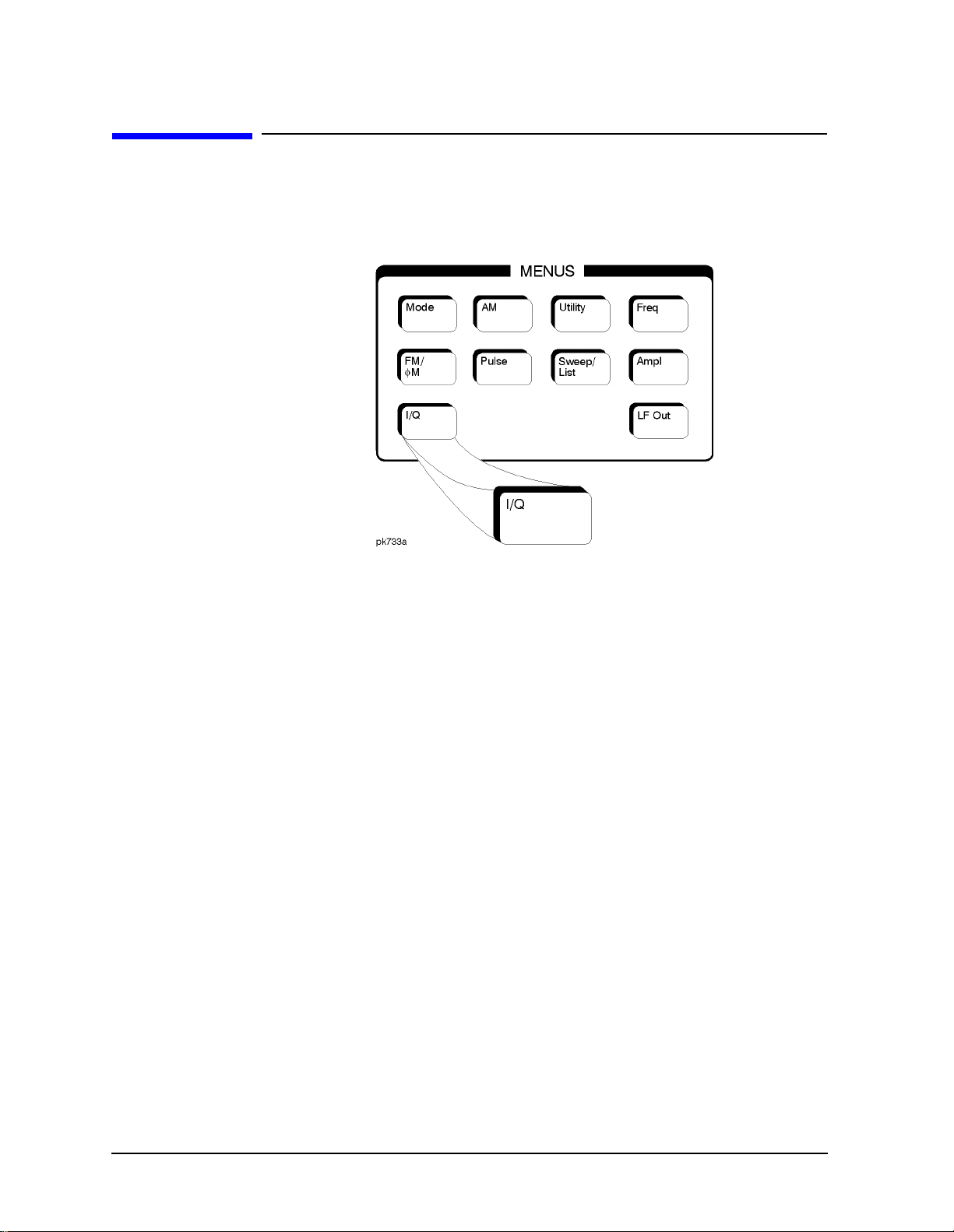 and ESG-DP Series Signal Generators. The softkeys in the I/Q menus