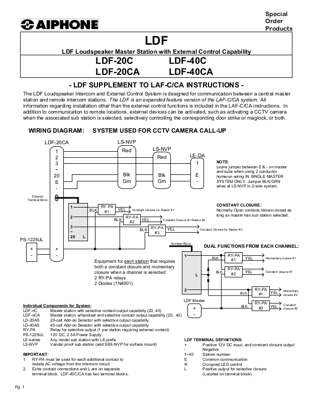station and remote intercom stations. The LDF is an expanded feature version of the LAF-C/CA system. All