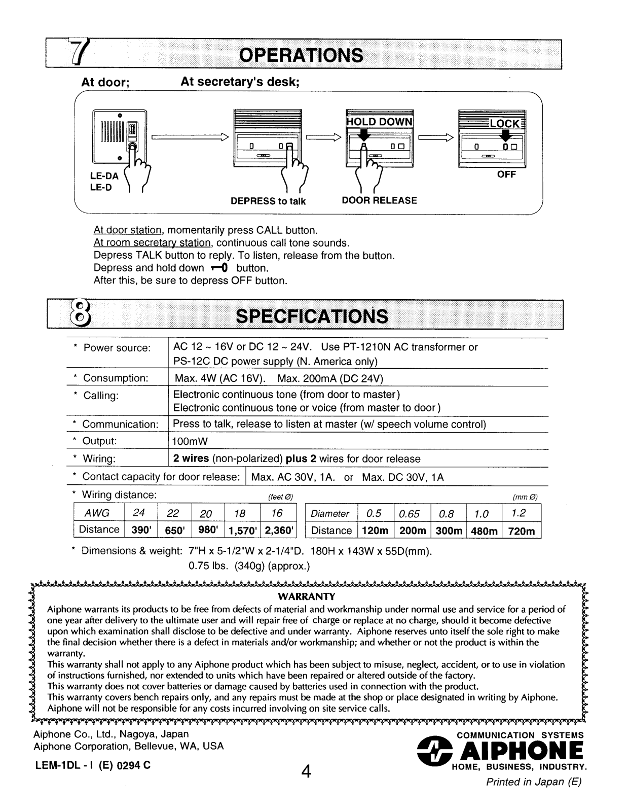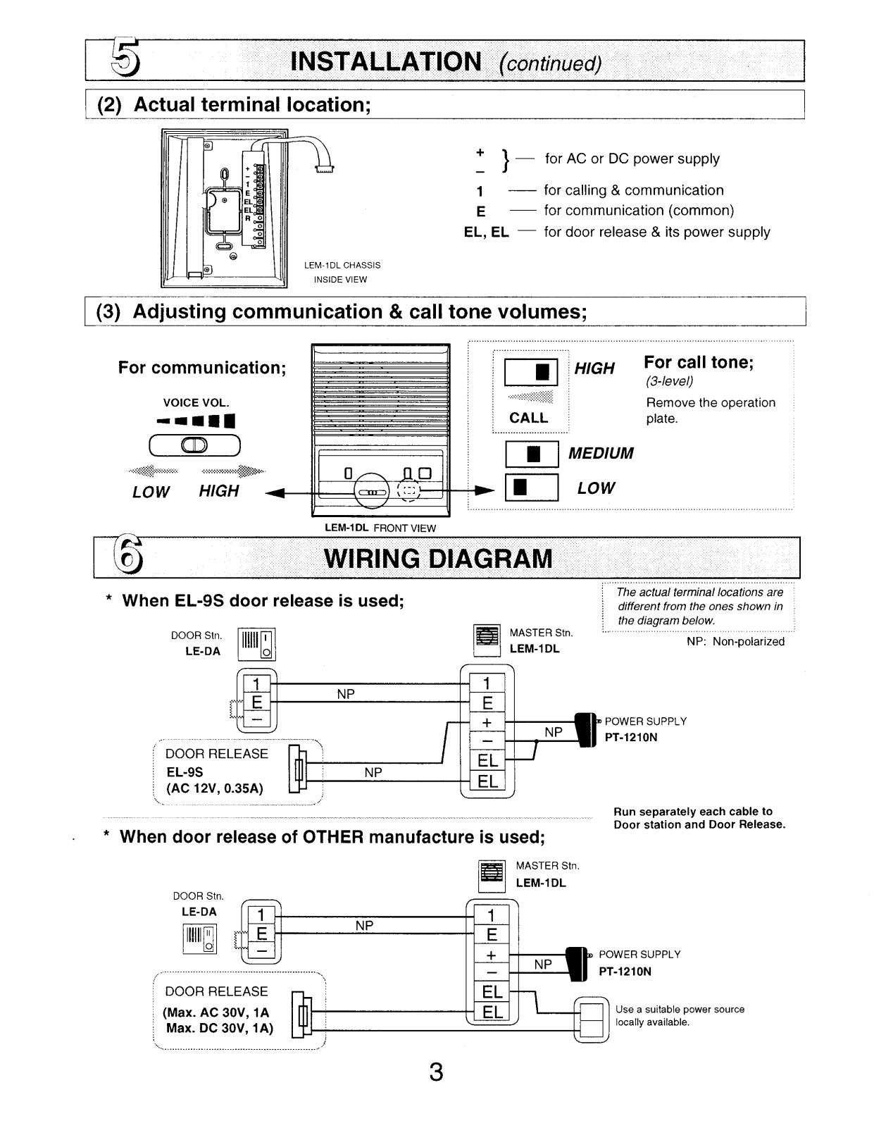 Aiphone LEM-1DL INSTALLATION INSTRUCTIONS