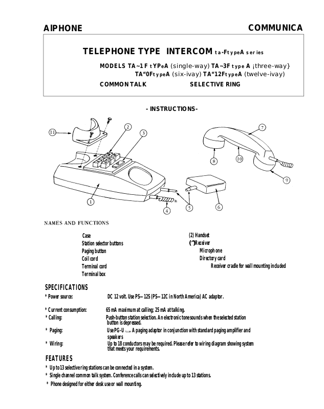 1) TA — F system shall consist of TA —3F, TA —6F or TA—12F phones. TA—IF will not operate with