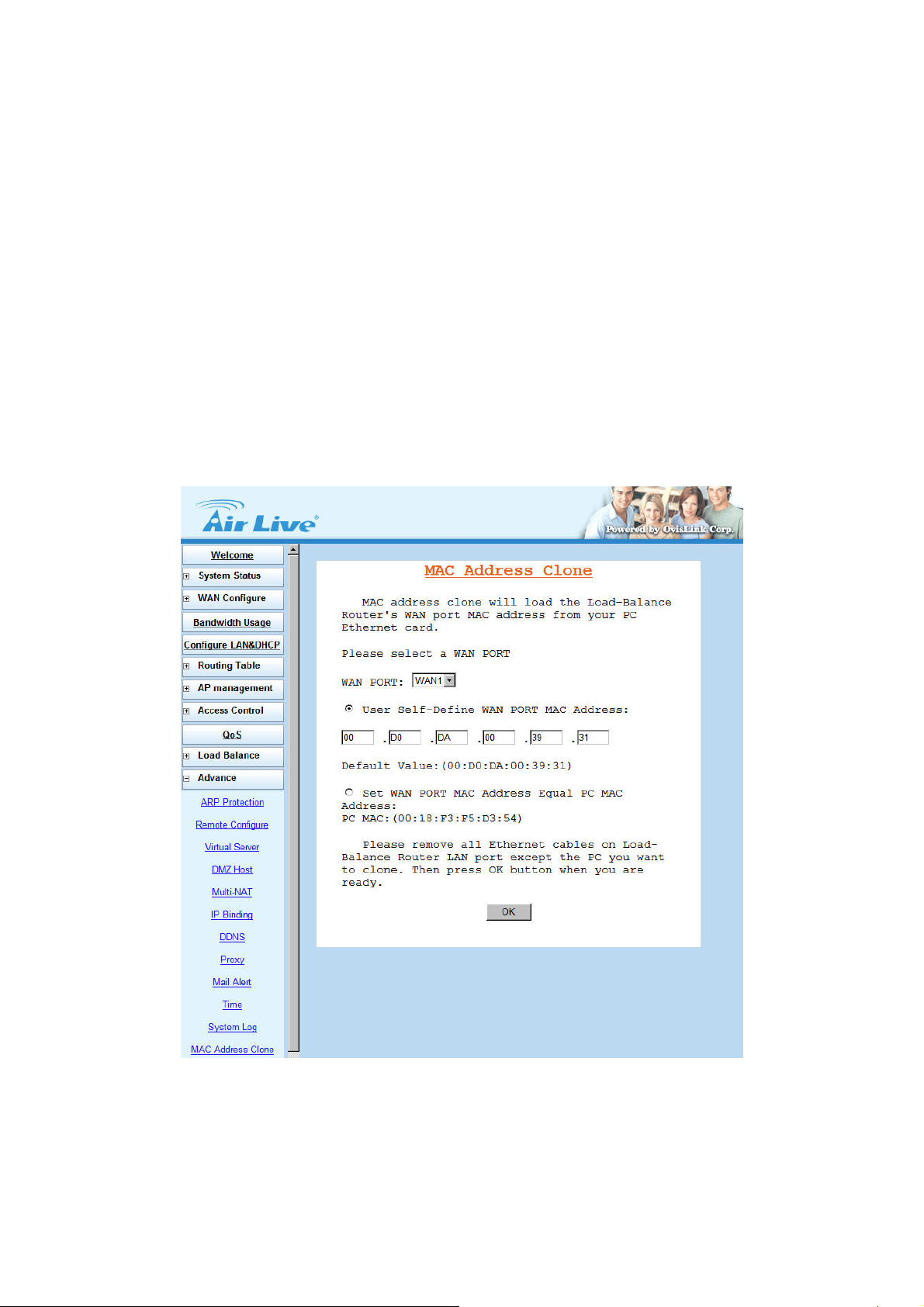Set WAN Port MAC Address Equal PC MAC Address: select to clone WAN MAC Address from LAN