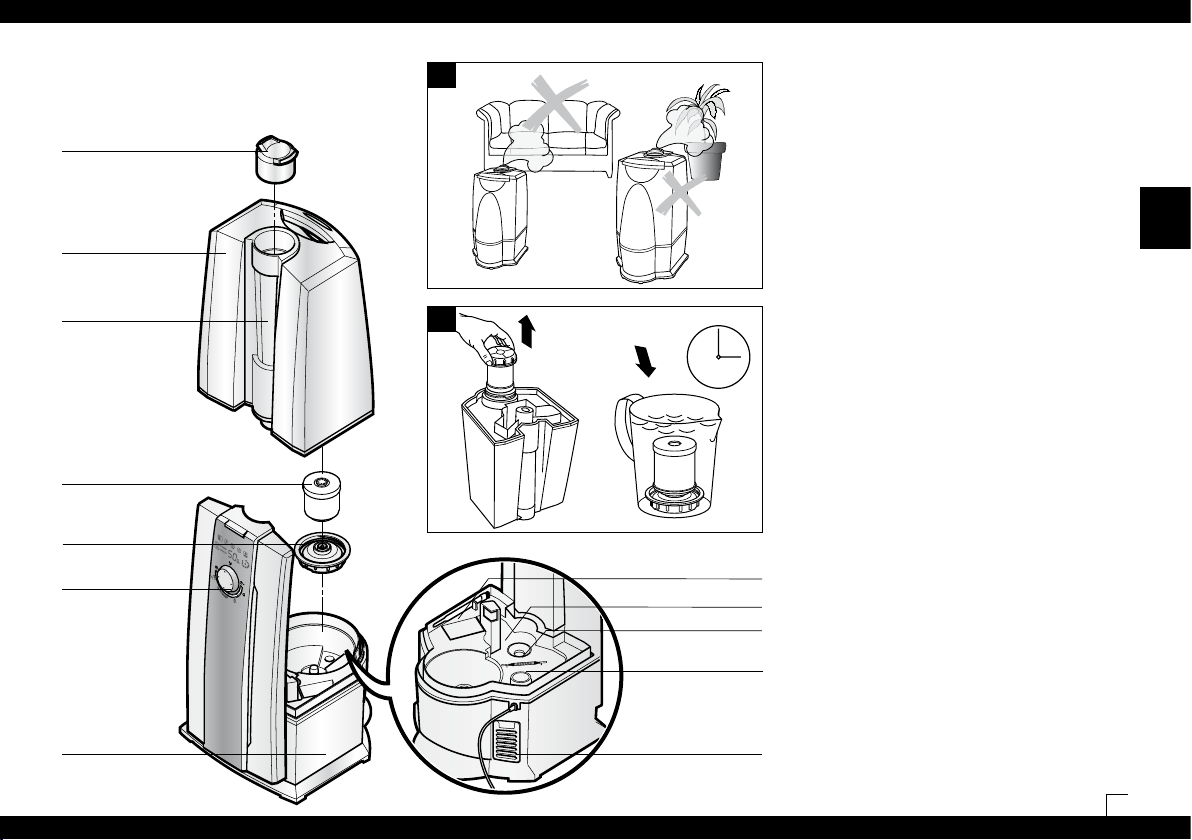 sobre el chorro de vapor. El humidificador es un aparato eléctrico, no un juguete.