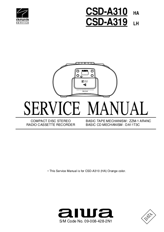 • This Service Manual is for CSD-A310 (HA) Orange color.