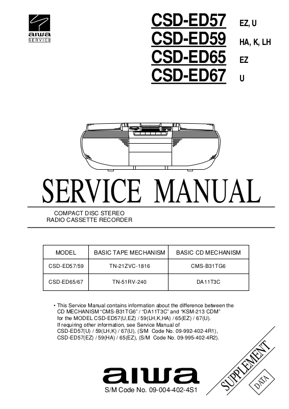 CSD-ED57(EZ) / 59(HA) / 65(EZ), (S/M Code No. 09-995-402-4R2).