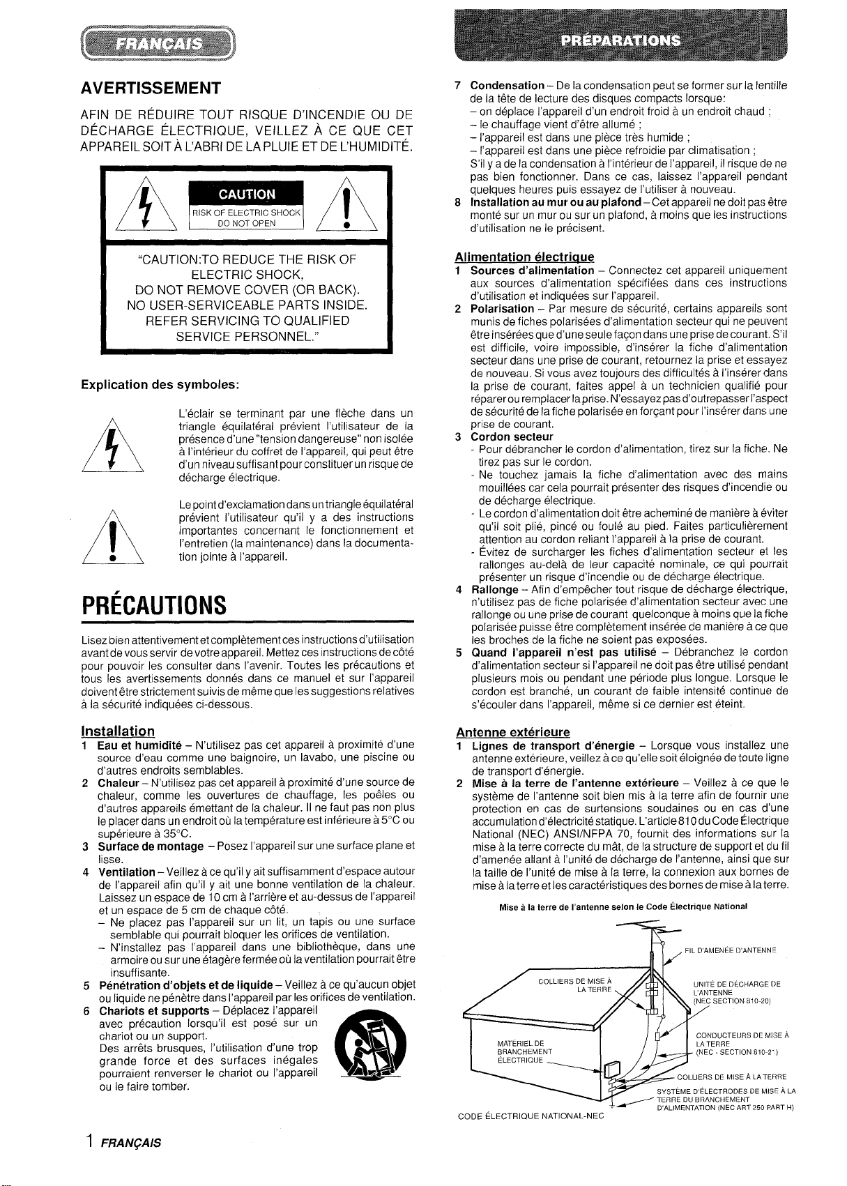 Tout modification ou reglage de cet appareil qui n’est pas explicitement