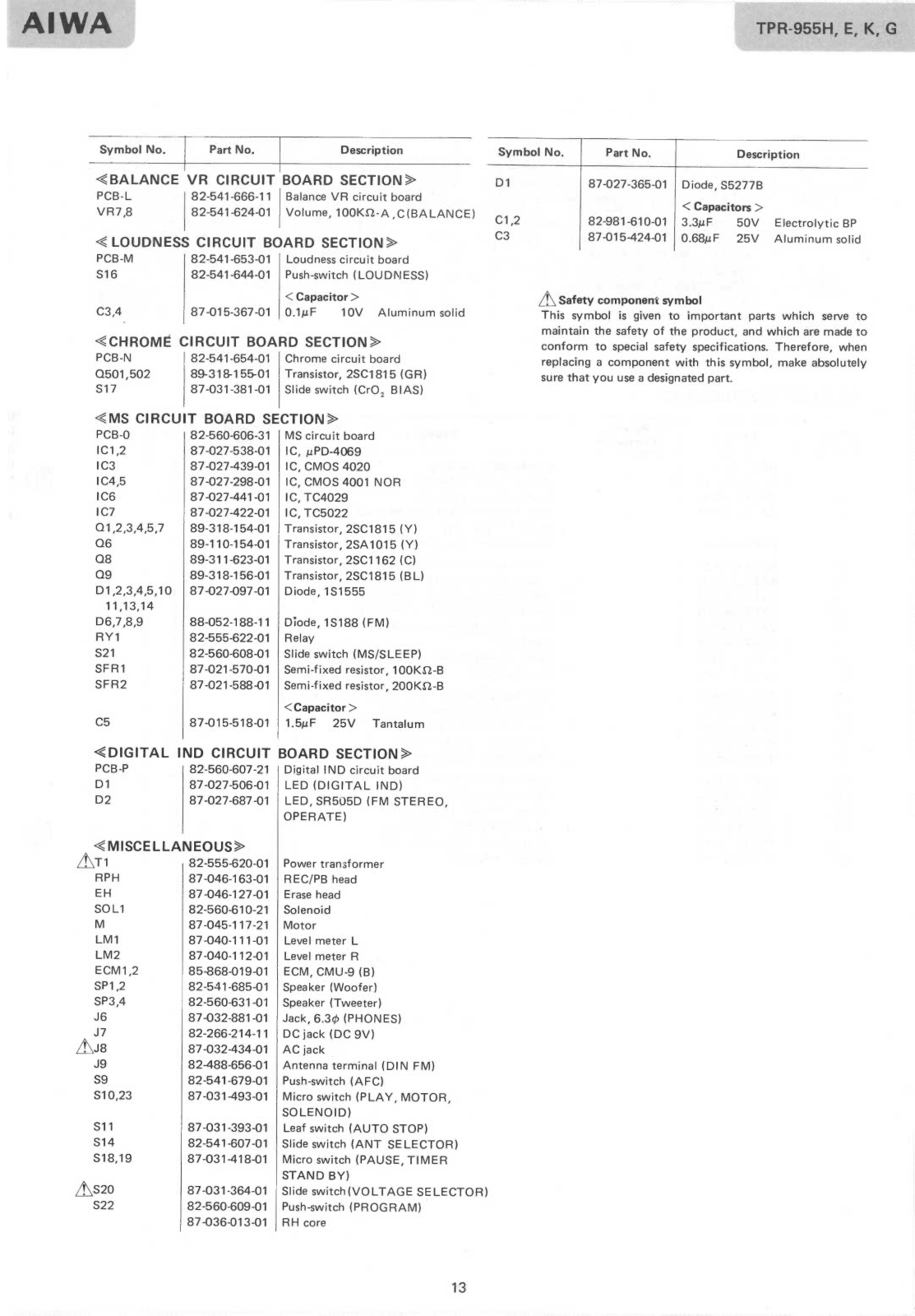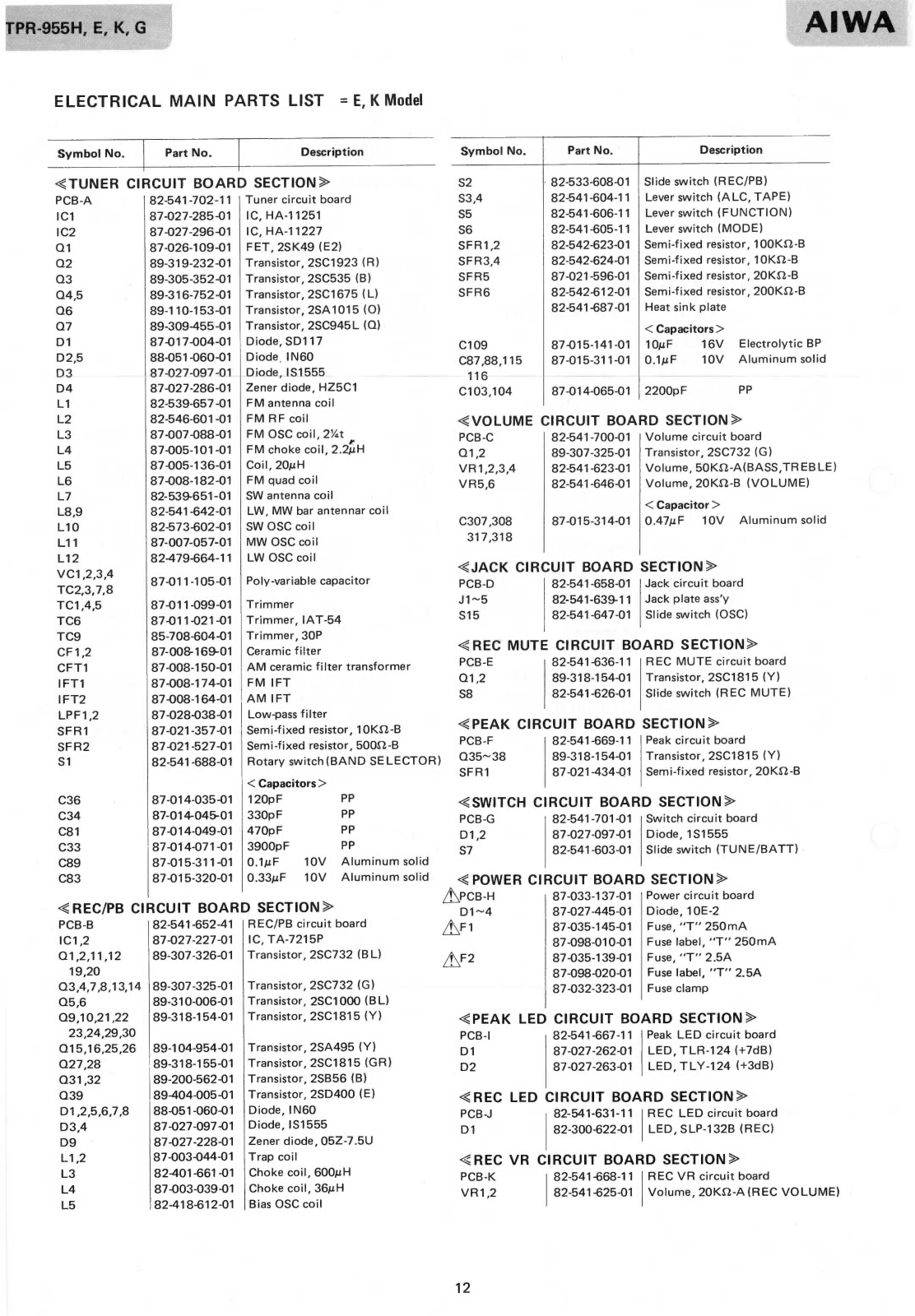 Aiwa TPR-955H, TPR-955E, TPR-955K, TPR-955G Service Manual