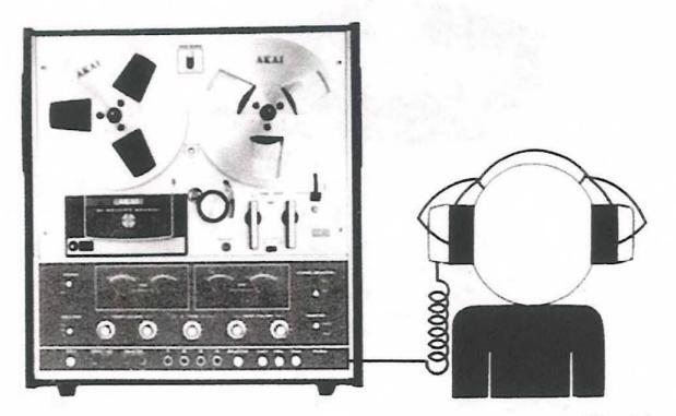 Das Abhören bei der Aufnahme sowie das Mithören bei der Wiedergabe kann mit Kopfhörern von 8 Ohm und einem Stereo-Klinkenstecker vorgenommen werden. Es können hierbei jeweils die beiden vorderen oder hinteren Kanäle abgehört werden durch die Umschaltung mit dem MONITOR-Umschalter.