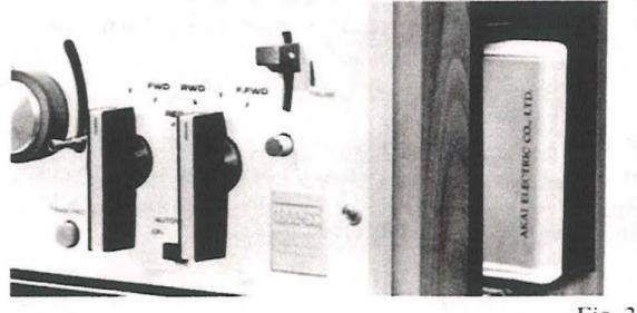 Eine technische Besonderheit ist die automatische Endabschaltung. Die Endabschaltung erfolgt mit Hilfe des Spannhebels auf der rechten Seite des Gerätes. Beim Au slaufen des Bandes fällt der Hebel herunter und das Gerät schaltet in Stellung Auto Shut OFF "ON" die Spannungsversorgung des Gerätes ab