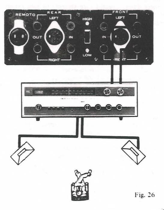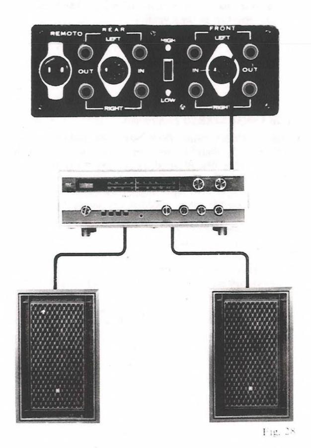 Bei der 2-Kanal Stereo-Wiedergabe werden nur die beiden vorderen Kanäle des Gerätes benützt. Ersetzen Sie hierbei die Schritte C, G und H der 4-Kanal-Stereo = Quadrophonie-Wiedergabe. Die Lautsprecheranschlußbuchsen an der Rückseite des Gerätes können hierbei zum Anschließen von 2 Zusatzlautsprechern verwendet werden. . Stereo-Umschalter in Stellung 2-CH (Kanal).