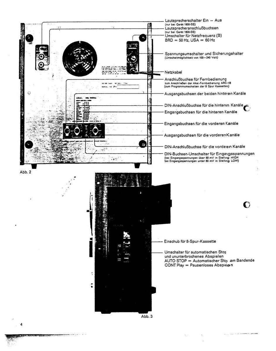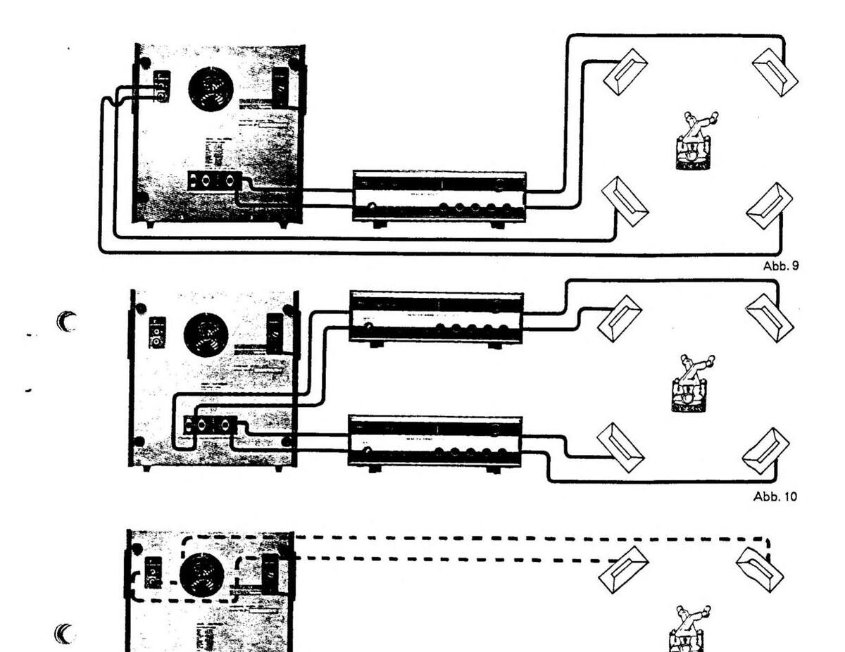 Da das Tonbandgerät 1800 D-SS keine eingebauten Endstufen hat, ist es erfordérlich, zusätzlich einen Stereo-Verstärker oder ein Steuergerät mit 2 Lautsprechern anzuschließen. Sollte ein 4-Kanal-Verstärker angeschlossen werden, so sind hierbei nur die beiden vorderen Kanäle zu benutzen
