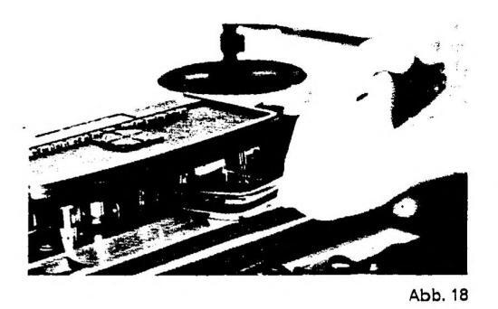 einiegen. Bei Tonbändern mit einer Bandgeschwindigkelt von 19 cm/Sek. = 71/2 Zoll die Bandandruckrolle und Umstellhülse der Tonwelle austauschen (Standard-Zubehör). A. Netzschalter einschalten.