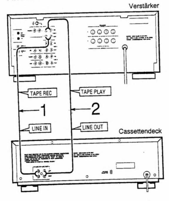 Falls Ihr Verstärker mit 2 oder mehr Cassetten-Buchsenpaaren (TAPE) versehen ist, werden die Cassette 1 (TAPE 1) Aufnahme-(REC) und Wiedergabe-Buchsen (PLAY) für den Anschluß empfohlen.