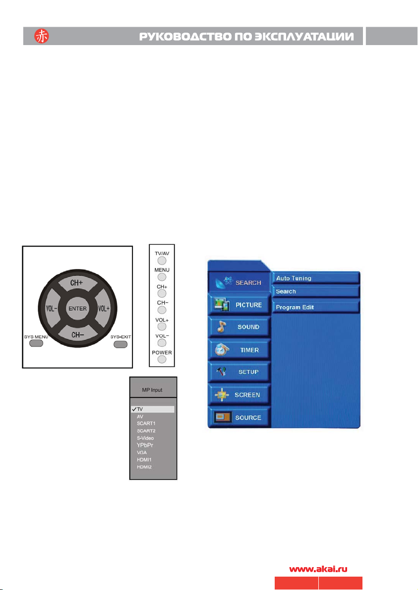 кнопок CH+/CH- выберите источник