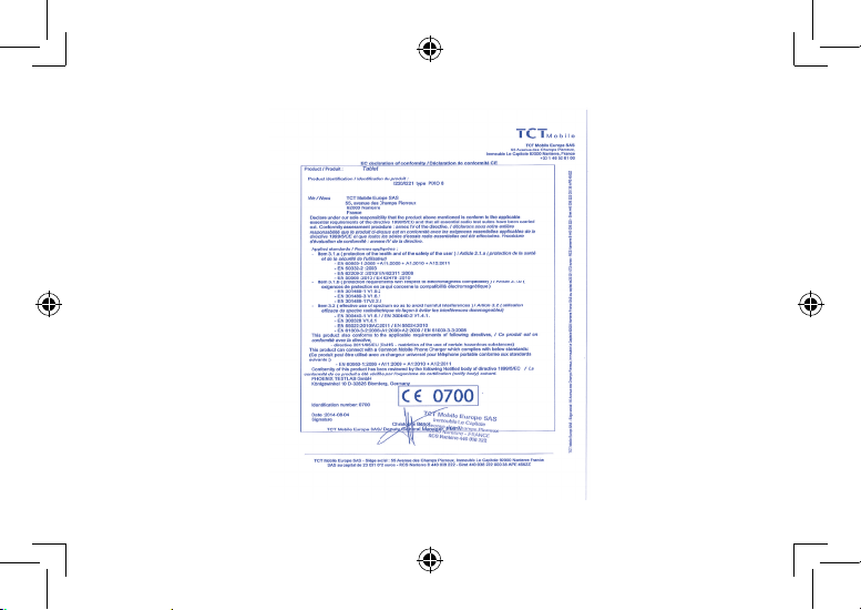 mater ials or applic ations of the p urchaser and n on-infrin gement of copyr ight. The pu rchaser und ertakes th at TCT Mobile ha s complied