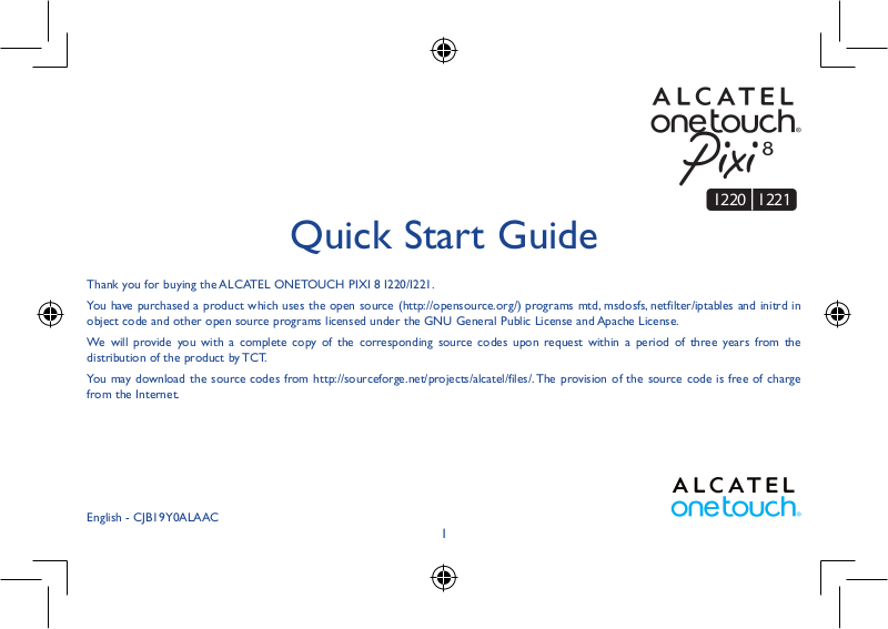 Thank you for buying the ALCATEL ONETOUCH PIXI 8 I220/I221.