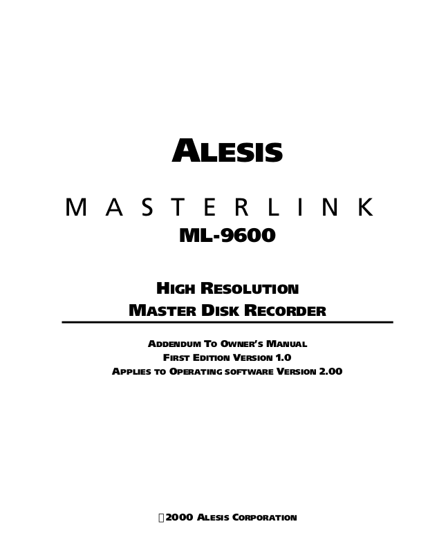 ALESIS ML-9600 REFERENCE MANUAL 1.00 1