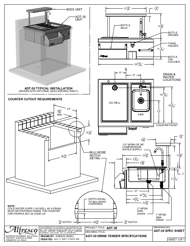 ADT-30 DRINK TENDER SPECIFICATIONS