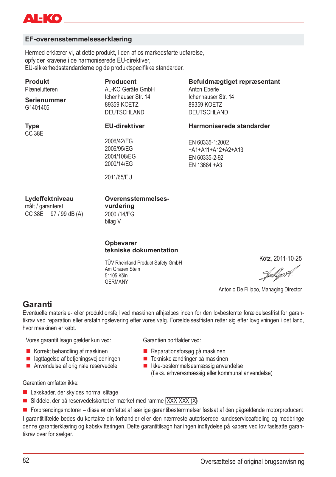 Al-ko Comfort 38 E Combi Care User Manual [ru]