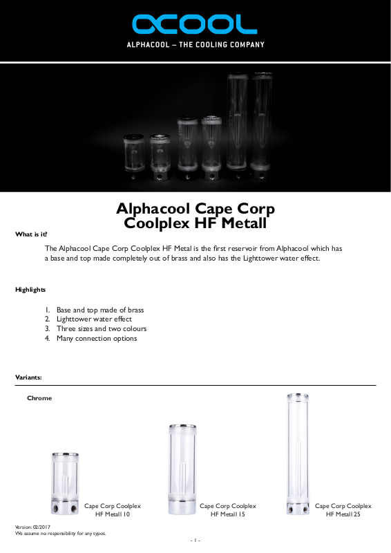 The Alphacool Cape Corp Coolplex HF Metal is the rst reservoir from Alphacool which has