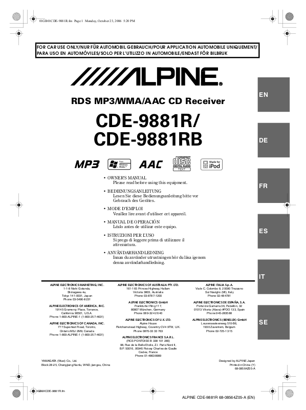 product. Return it to your authorized Alpine dealer or the nearest