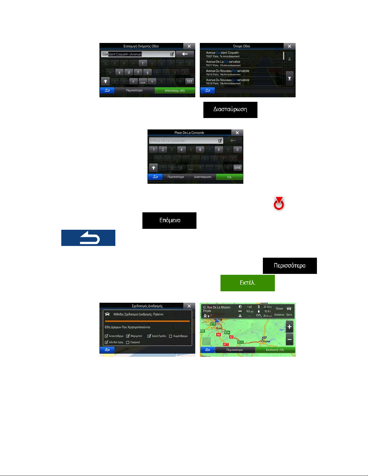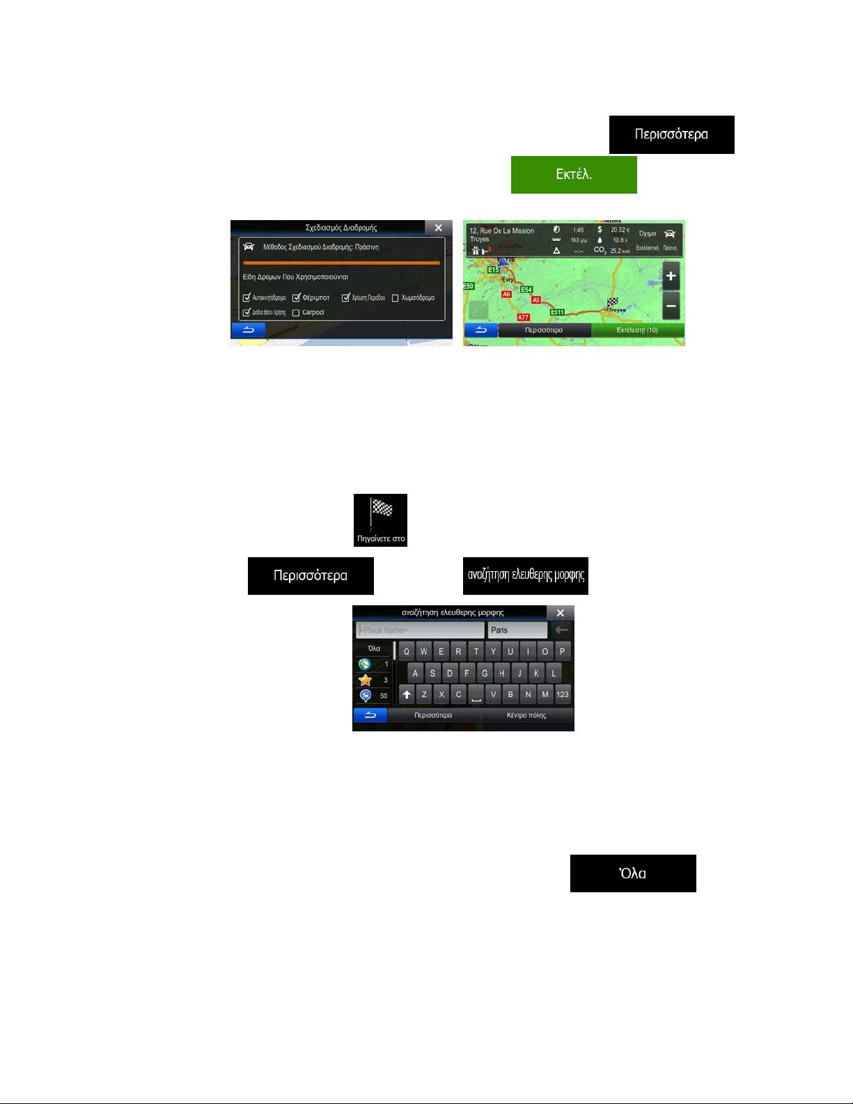 προορισμούς. Η αφετηρία εί ναι η τρέχουσα (ή τελευταία γνωστή) θέση, εκ προεπιλογής. Αν χρειαστεί να