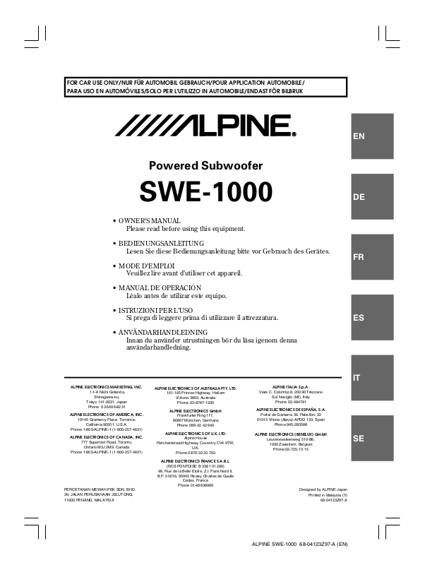 Phone 1-800-ALPINE-1 (1-800-257-4631)
