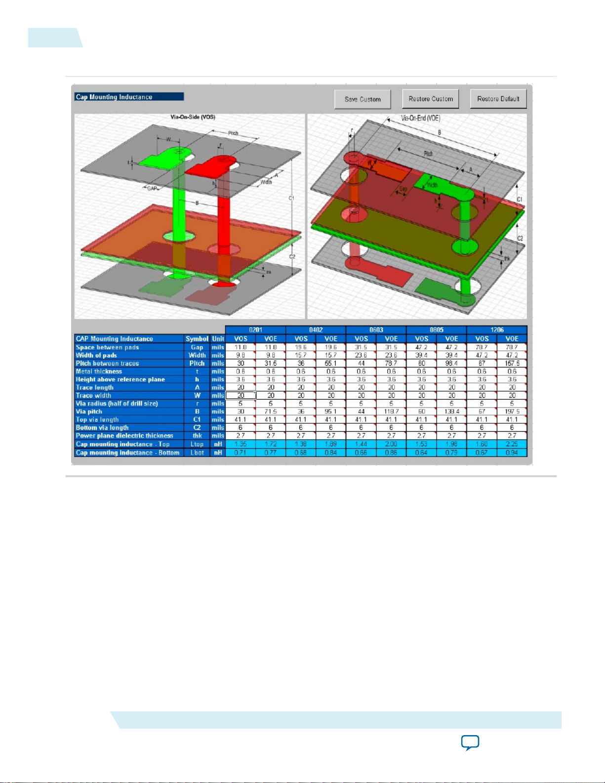 • Using Via On Side (VOS) instead of Via On End (VOE) capacitor mounting topologies to help at high