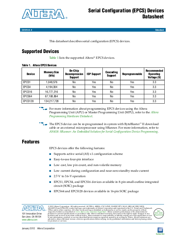 Serial Configuration (EPCS) Devices DatasheetJanuary 2012 Altera Corporation