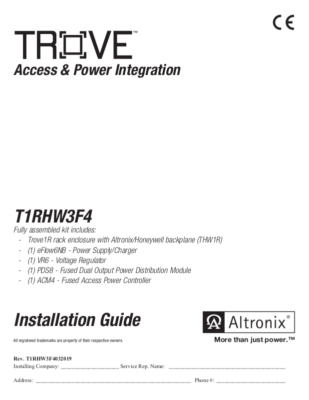 Altronix T1RHW3F4 rack kit is pre-assembled and consists of Trove1HW1R enclosure/backplane with factory installed Altronix power