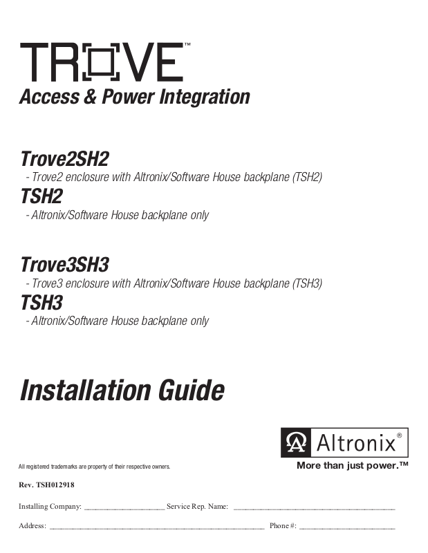 - Trove2 enclosure with Altronix/Software House backplane (TSH2)