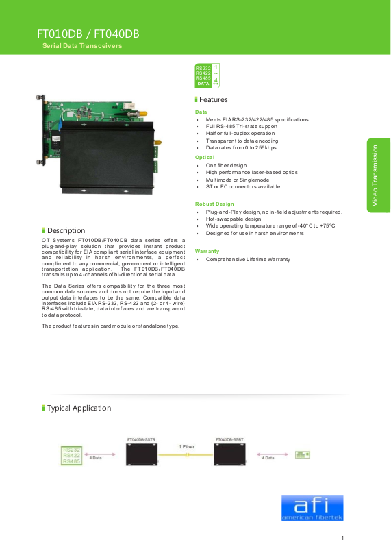 FT0 40 DB -SS RT 4-ch bi di rec ti onal Da ta Tr ans ce iv er
