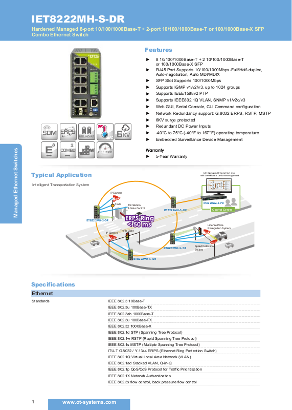 Network Redundancy support: G.8032 ERPS, RSTP, MSTP