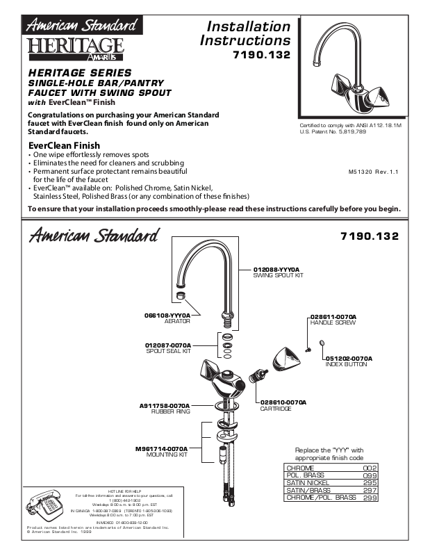 • EverClean™ available on: Polished Chrome, Satin Nickel,