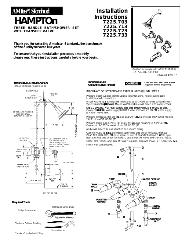 NOTE; PROTECT FINISH ON SHOWER ANO TUB TRIM WHEN INSTALLING.
