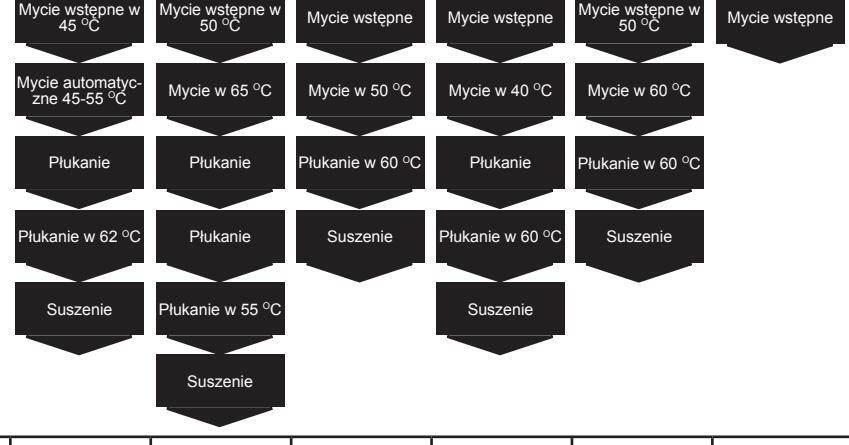 ** Program referencyjny dla instytutów badawczych. Badania zgodne z normą PN-EN 50242. * Podane w tabeli wartości czasu trwania programu, zużycia energii i zużycia wody zostały określone w warunkach laboratoryjnych. Rzeczywiste wartości mogą posiadać pewne odchylenia.