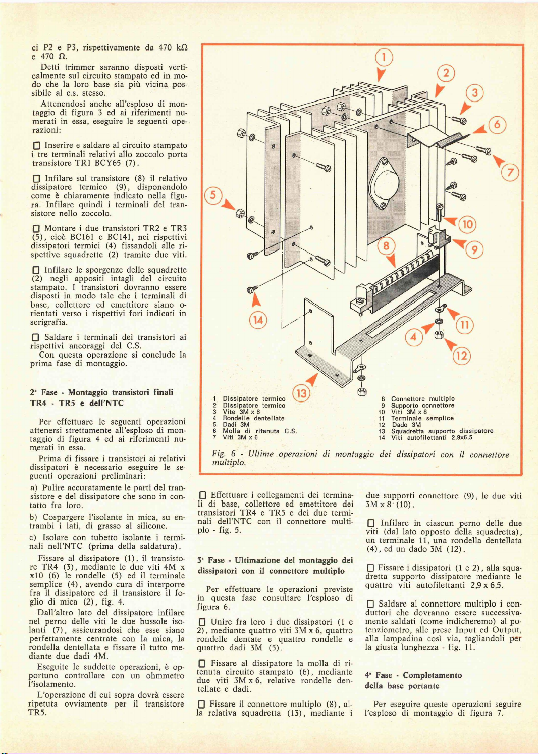 condensatore dacondensatore da 0,1 uF potenziometro da 2potenziometro da 470 kfi potenziometro da 470 fi transistore BCY 65 transistore BC 161 ) transistore BC 141 J 4 transistori