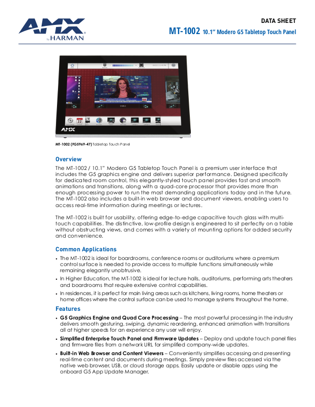The MT-1002 / 10.1” Modero G5 Tabletop Touch Panel is a premium user interface that