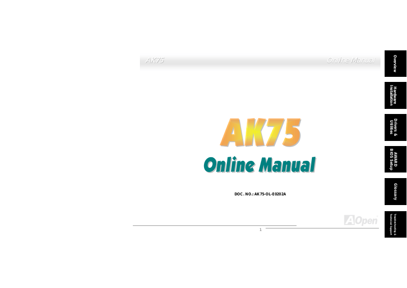 Thank you for choosing AOpen AK75 motherboard. The AK75 is AMD® Socket 462 motherboard (M/B) based on the ATX form factor