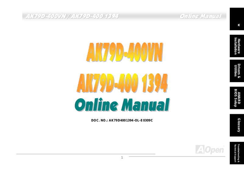 Thank you for choosing AOpen AK79D-400VN / AK79D-400 1394. The AK79D-400VN / AK79D-400 1394 is based on AMD®