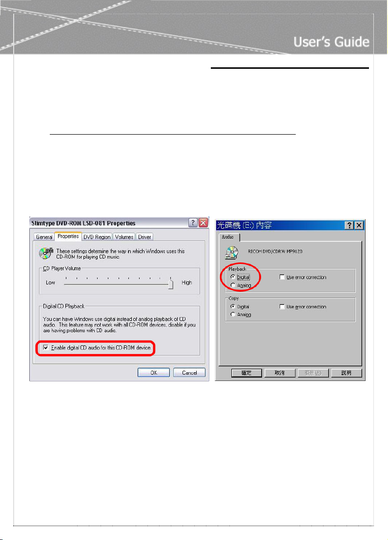 page and enable digital CD audio. Windows XP default setting is digital CD enabled.
