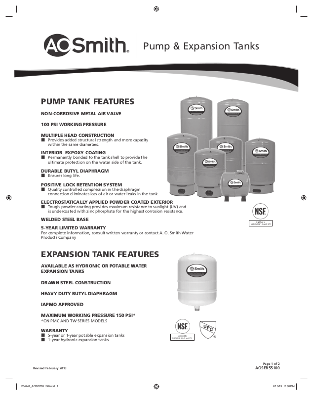 PMC SERIES (POTABLE EXPANSION TANKS) 5-YEAR WARRANTY