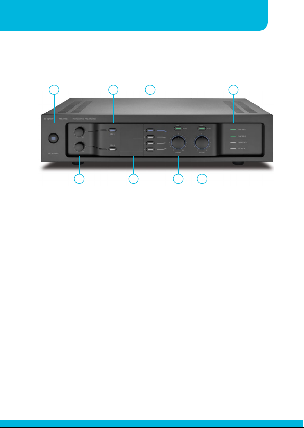 1. On/Standby button and led: switch the standby ON/OFF with this