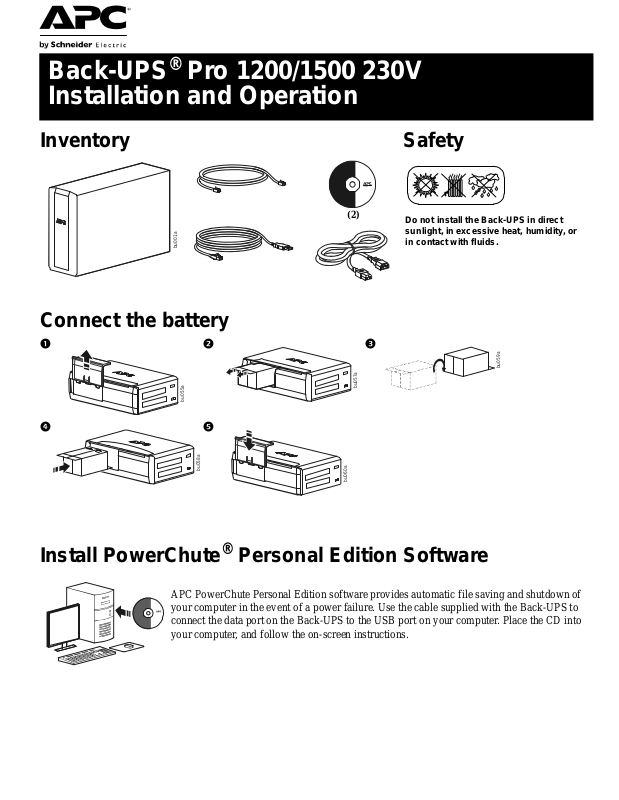 Back-UPS Pro 1200 & 1500 230 V Installati on and O peration2