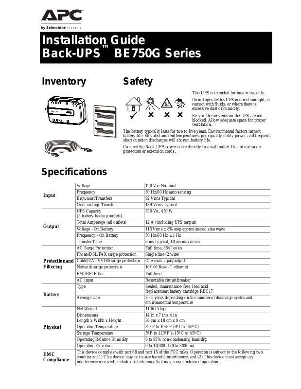 Connect the Back-UPS power cable directly to a wall outlet. Do not use surge