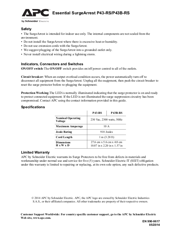 APC by Schneider Electric warrants its Surge Protectors to be free from defects in materials and