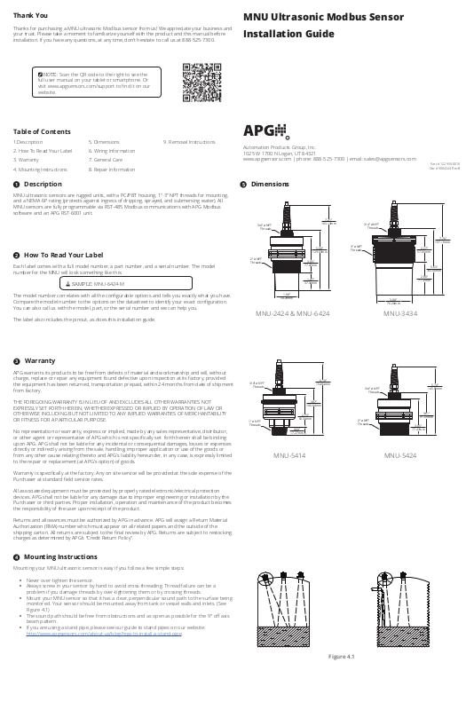 Thanks for purchasing a MNU ultrasonic Modbus sensor from us! We appreciate your business and