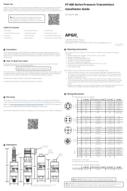 Thanks for purchasing a PT-400 series pressure transmitter from us! We appreciate your business