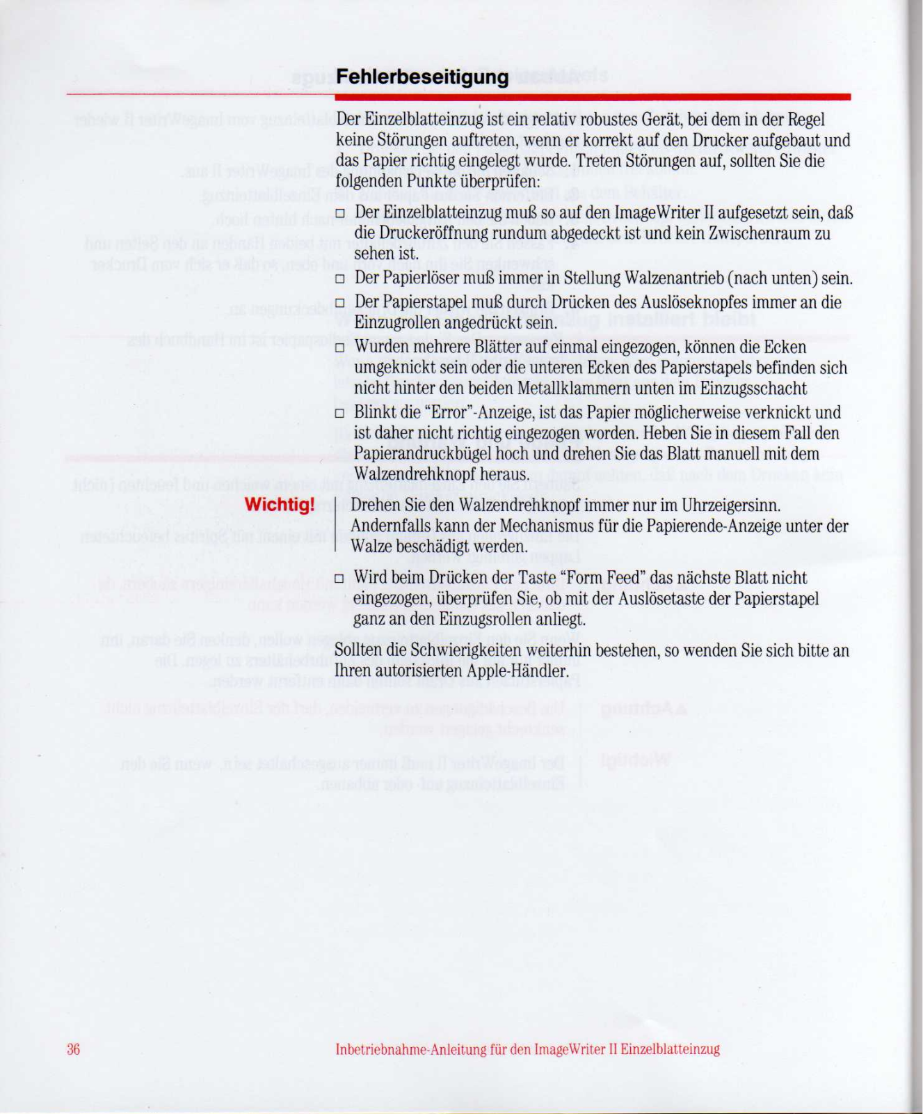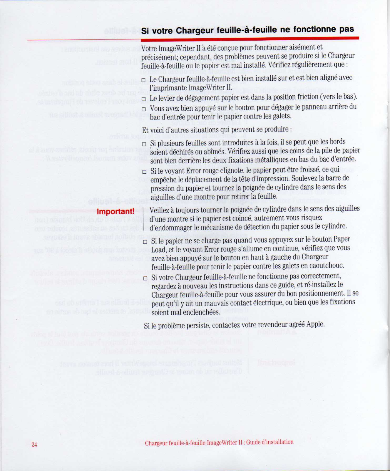 Apple ImageWriter II SheetFeeder Installation Manual